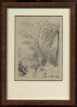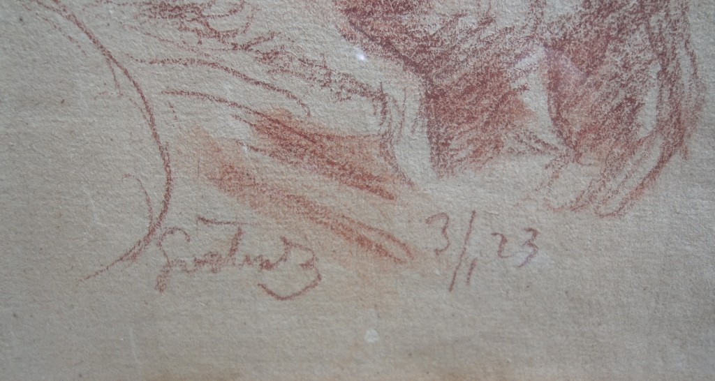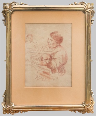 kresba rudkou, dole uprostřed signováno ŠVABINSKÝ a datováno 3.1.1923. Luxusní ručně řezaný zlacený rám, pasparta, sklo.