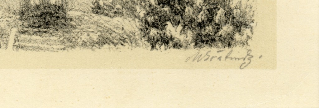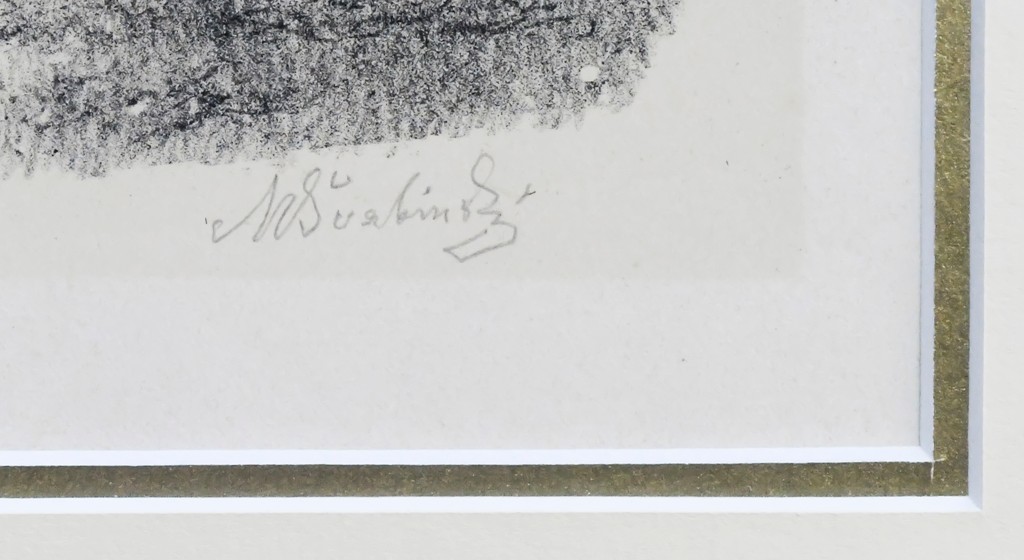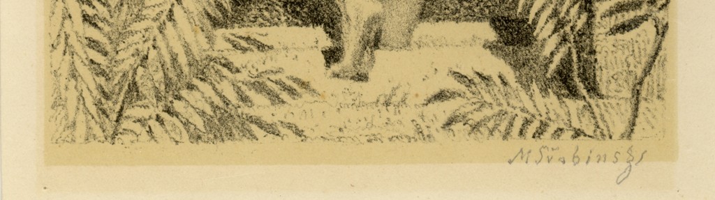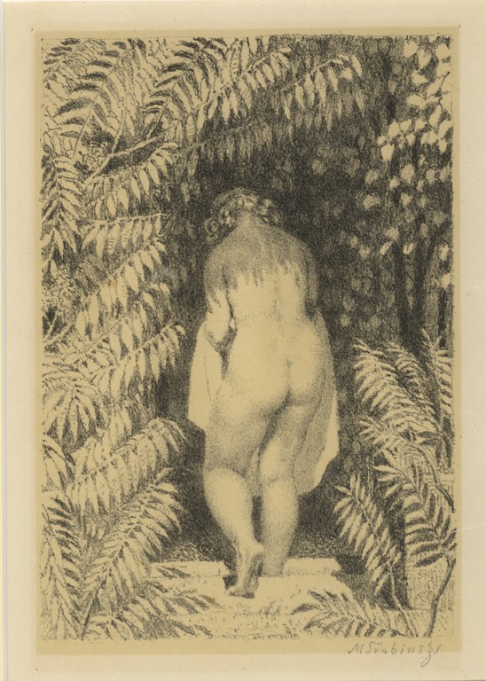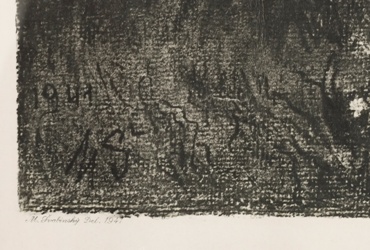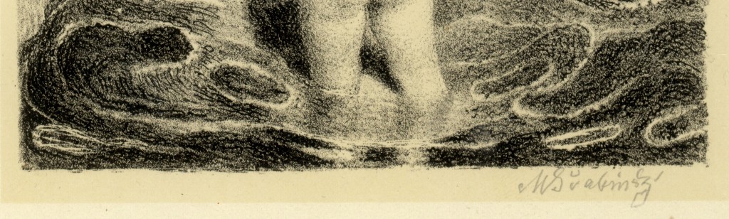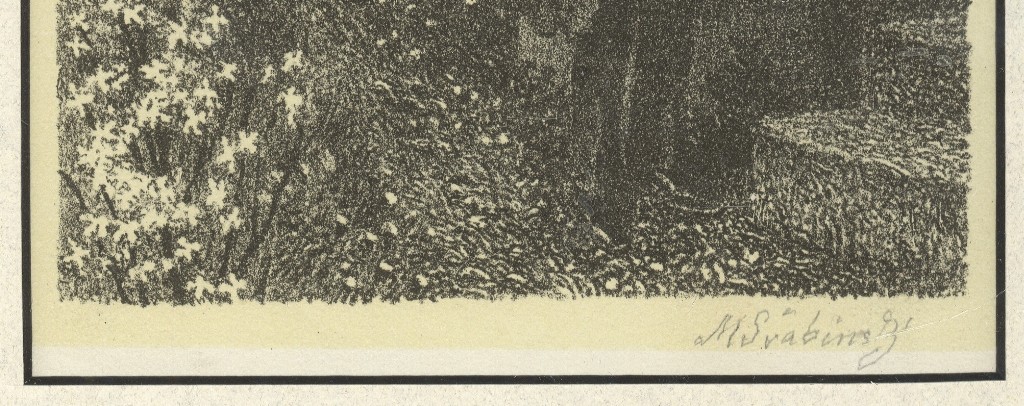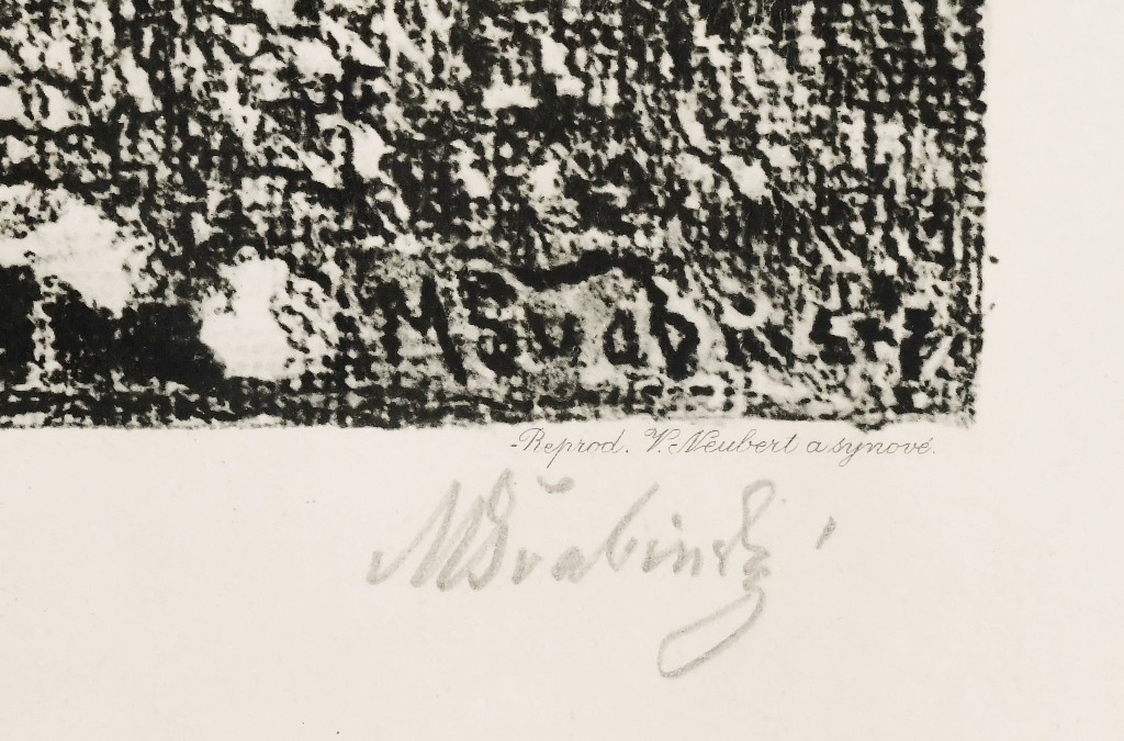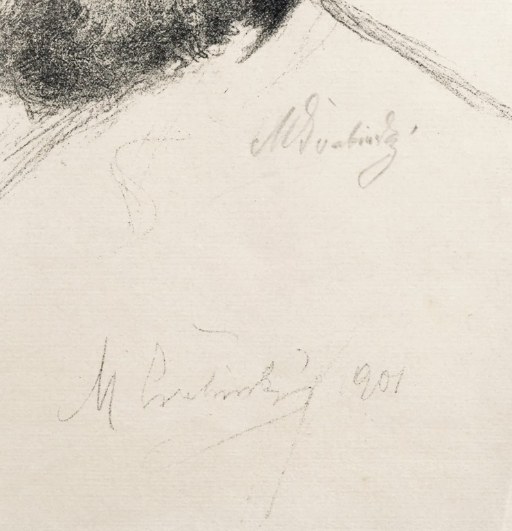 černobílá litografie, signováno v desce i tužkou M. ŠVABINSKÝ, datováno 1901. V pravém dolním rohu stopa po přehnutí listu. Rám, pasparta, antireflexní sklo.