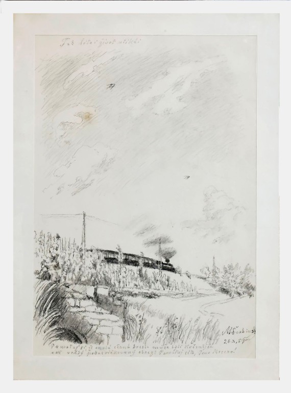 Švabinský Max (1873-1962)"Železniční násep s projíždějícím vlakem"