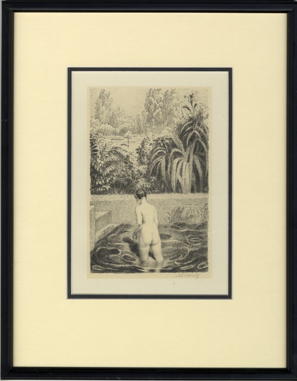 litografie, signováno vpravo dole tužkou M ŠVABINSKÝ, práce z roku 1943. Soupis grafického díla č. 477. Rám, pasparta, sklo.
