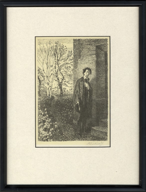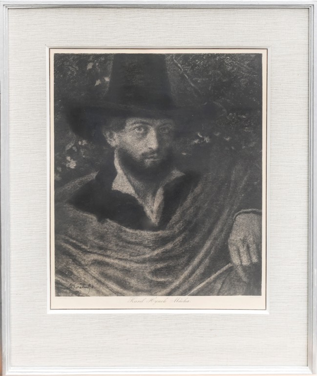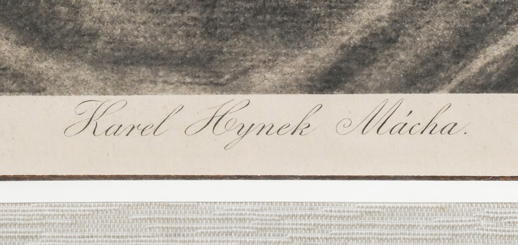 heliogravura, signováno v desce M ŠVABINSKÝ, datováno 1907. Pod obrazovou plochou tiskem: M. Švabinský del. 1907/ Karel Hynek Mácha/ Štenc Praha. Rám, pasparta, sklo.