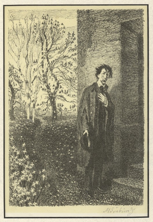 Publikováno v "Deset básní Jaroslava Vrchlického," 1958. Ve sbírkách Moravské galerie v Brně zařazena grafika - I lustrace k J. Vrchlickému "Za trochu lásky" zrcadlově převrácená. - Švabinský Maxmilian Kreslíř, malíř, grafik, ilustrátor, profesor a rektor na AVU v Praze, člen SVU Mánes, SVUM, zakládající člen SČUG Hollar, člen vídeňského Hagenbundu a Société nationale des Beaux-Arts v Paříži. Od roku 1923 rytíř Řádu čestné legie. Navrhoval také bankovky, poštovní známky, vitráže, gobelíny. Autor portrétů, krajinomaleb, erotických scén, plakátů, ex libris. (17.9.1873 Kroměříž - 10.2.1962 Praha)