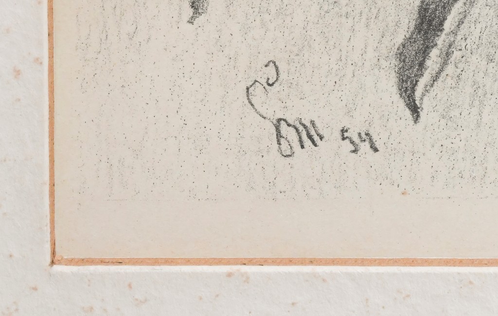 litografie, signováno vlevo dole ŠM s datací 1954 a vpravo dole tužkou M ŠVABINSKÝ. V soupise grafického díla 673. Rám, pasparta, sklo.
