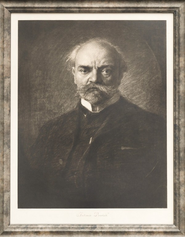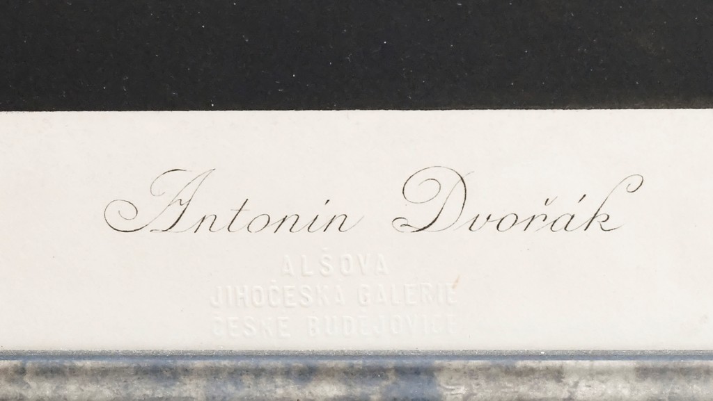 heliogravura, pod obrazovou plochou tiskem: Vydal "Mánes" v Praze 1909/Antonín Dvořák/ J. Štenc Praha. Značeno slepotiskem: ALŠOVA JIHOČESKÁ GALERIE, ČESKÉ BUDĚJOVICE. Rám, sklo.