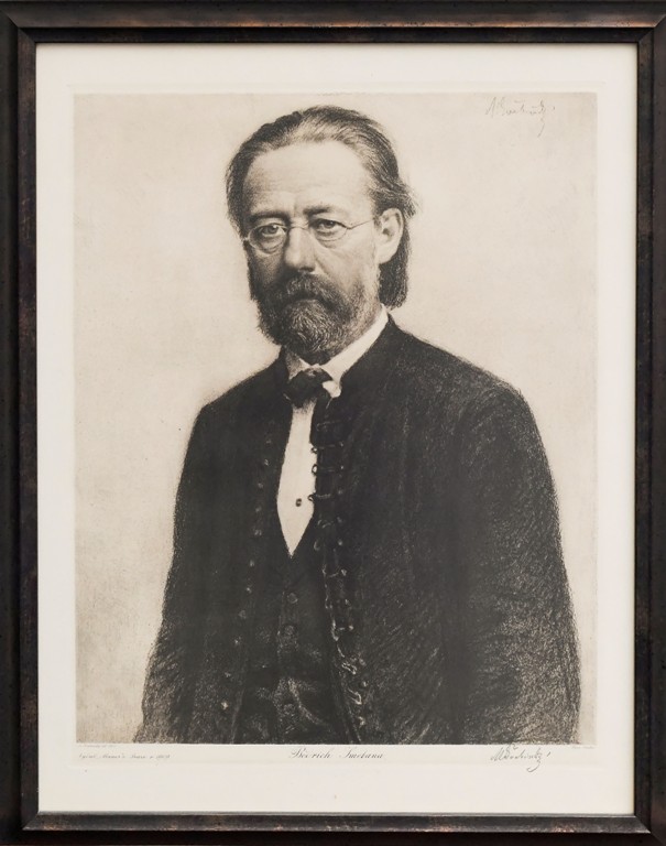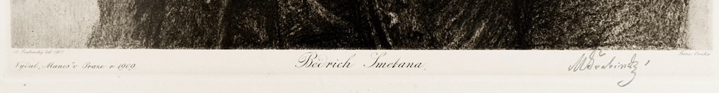 heliogravura, signováno vpravo dole tužkou M ŠVABINSKÝ. Pod obrazovou plochou tiskem: M. Švabinský Del 1907/ Vydal "Mánes" v Praze v 1909/ Bedřich Smetana/ Štenc Praha.