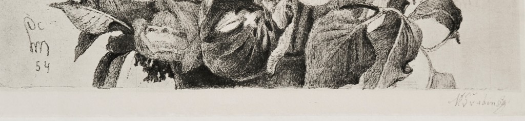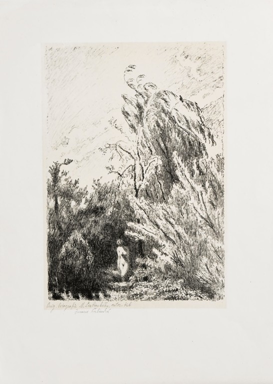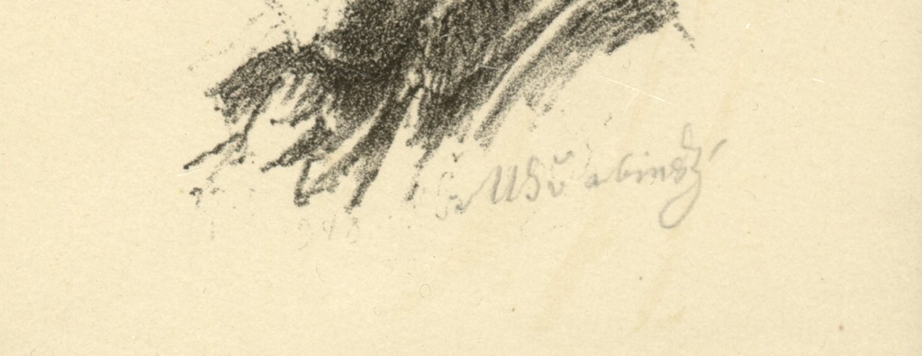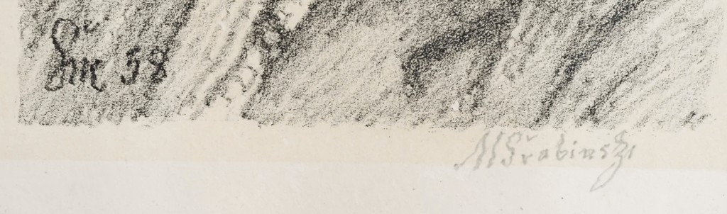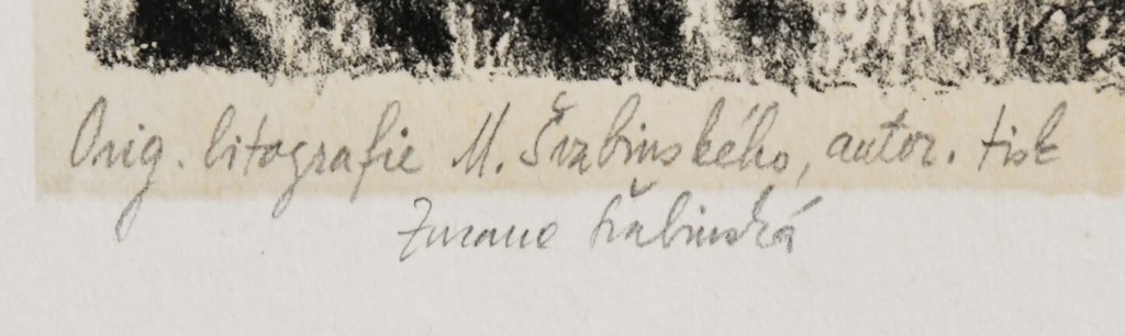litografie, signováno vpravo dole M ŠVABINSKÝ a vlevo v desce ŠM s datací 1954. V levé části listu mimo tiskovou plochu byl papír přehnut. Volný list.