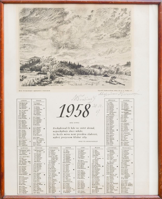 Švabinský Max (1873-1962)Kalendář Svazu čs. spisovatelů pro rok 1958 - Krajina s hochem