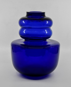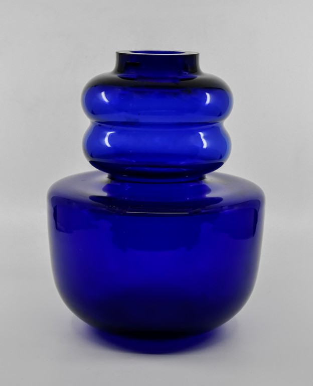 sklo indigově modré, návrh FRANTIŠEK VÍZNER, 1976, číslo návrhu 7624/21, sklárna Škrdlovice.