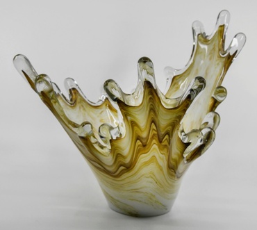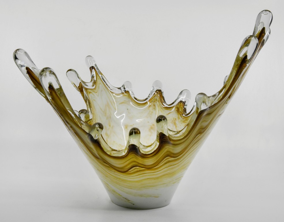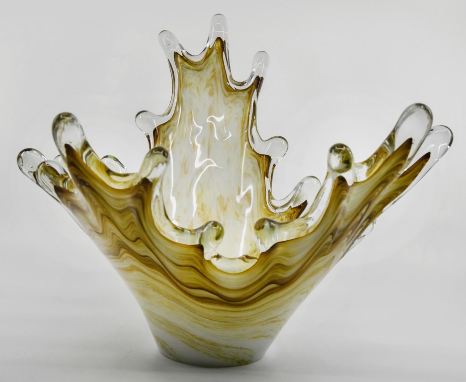 sklo světle hnědé, krakelované, návrh JAN HAVELKA, Nový Bor Borocrystal, 70. léta 20. století.