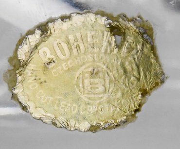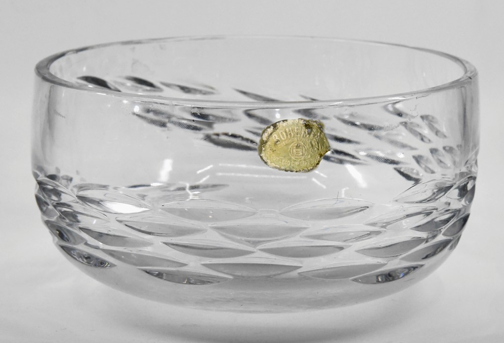 sklo čiré, bezbarvé, lisované, papírový štítek Bohemia Glass, Made in Czechoslovakia, druhá polovina 20. století.