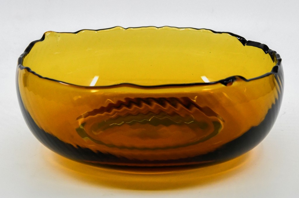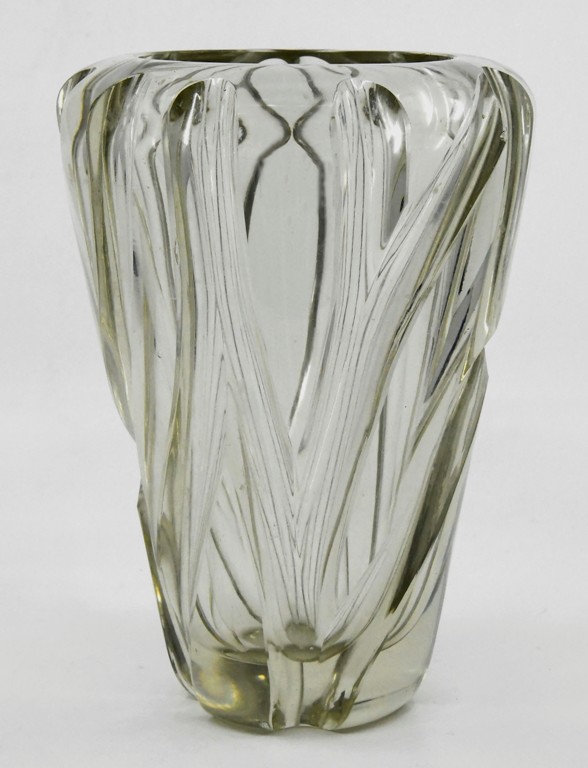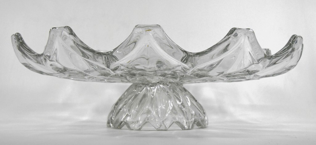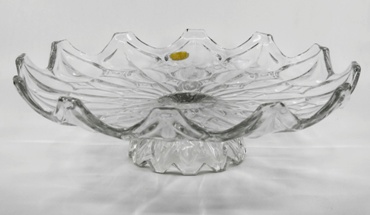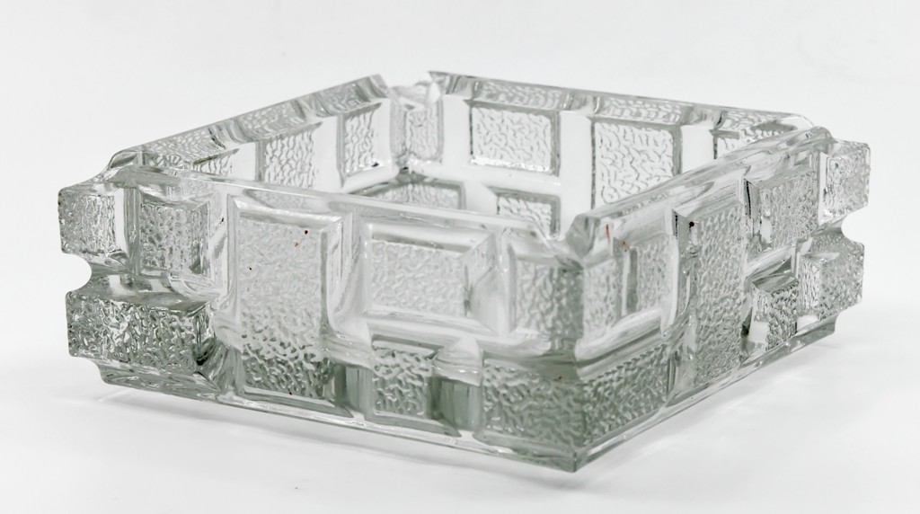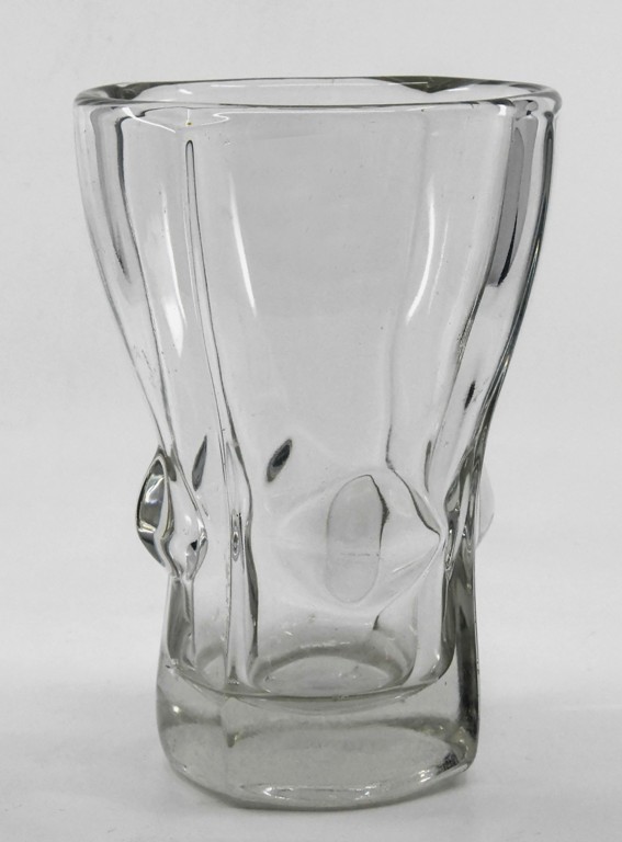 sklo čiré, bezbarvé, lisované, návrh VLADISLAV URBAN, 1968, model 618, sklárna Rosice. Drobnější oklepy na více místech.