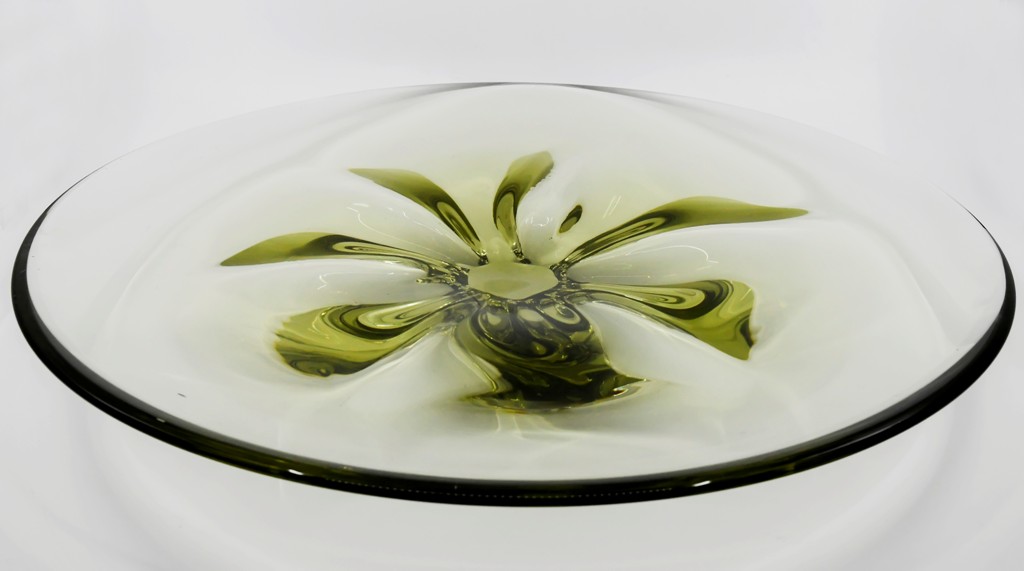 sklo hutní zelenkavé, druhá polovina 20. století. Sklárna Škrdlovice