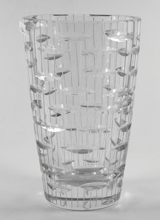 sklo hutní, masivní, olovnaté, broušené, druhá polovina 20. století. Nepatrná výrobní vada.