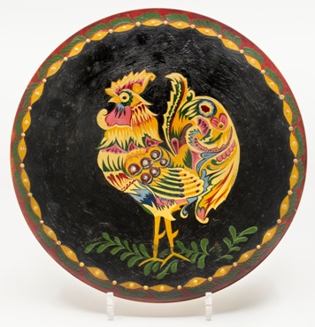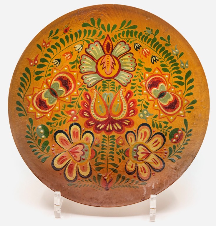 dřevěný, ručně malovaný, dekor folklórní motiv. Neznačeno, kolem poloviny 20. století.