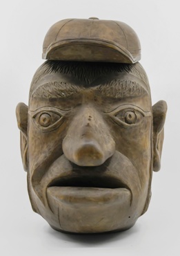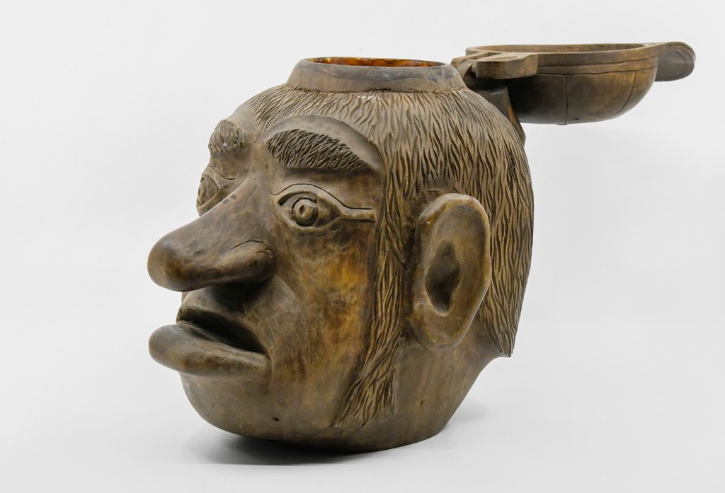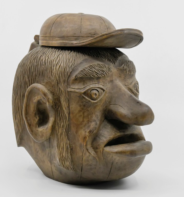 řezba ve dřevě, kolem roku 1935. Vnitřek ošetřený smůlou tak, aby se z korbelu mohlo nezávadně pít. Kvalitní umělecká kuriozita, velmi dobrý stav.