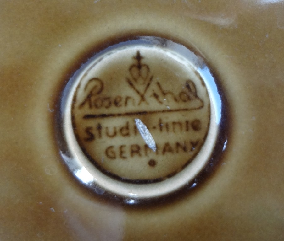 keramika glazovaná v luxusním trojbarevném provedení, značeno ROSENTHAL, STUDIO-LINIE GERMANY. Návrh BJÖRN WIINBLAD ze 60-tých let 20. století, série "Brotzeit", výroba 70tá léta. Výborný stav.