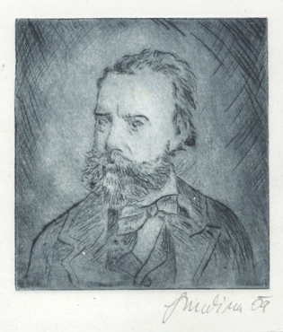 uprostřed vytištěno LUDWIG MICHALEK: ANT. DVOŘÁK 1891. Rám,