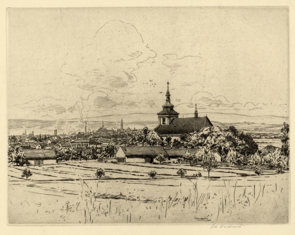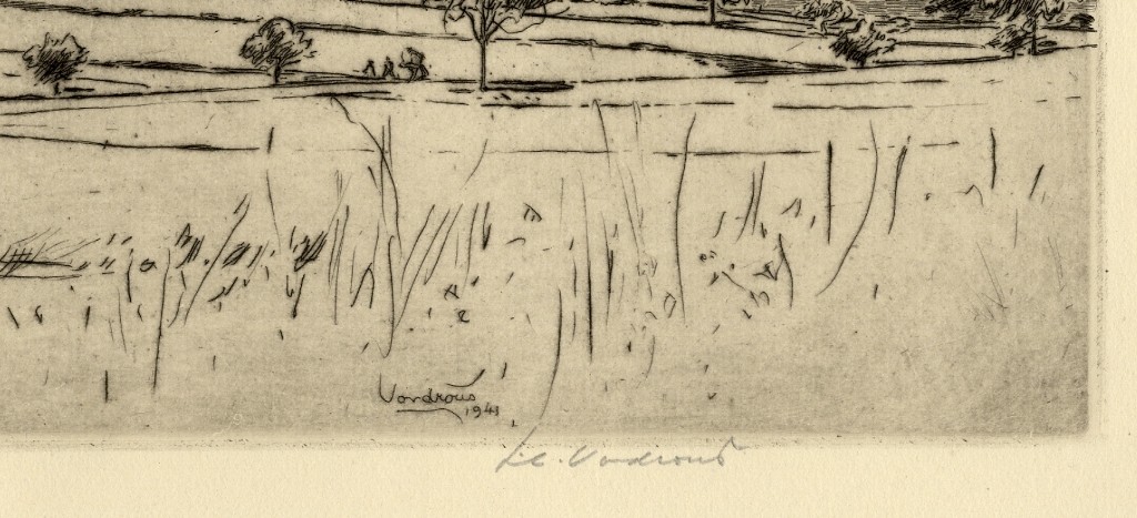 vpravo dole signováno VONDROUŠ, datováno 1941. Rám, pasparta,