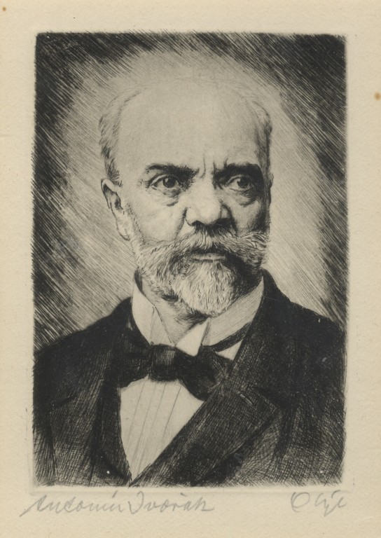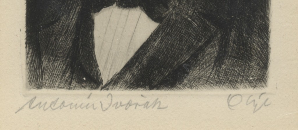 vpravo dole tužkou, neurčeno, vlevo dole tužkou Antonín Dvořák.