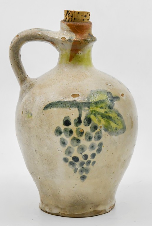 keramika glazovaná, zdobená ruční malbou stylizovaných vinných hroznů, nápis Sv. Antonín, neznačeno. Na několika místech poškozená glazura.